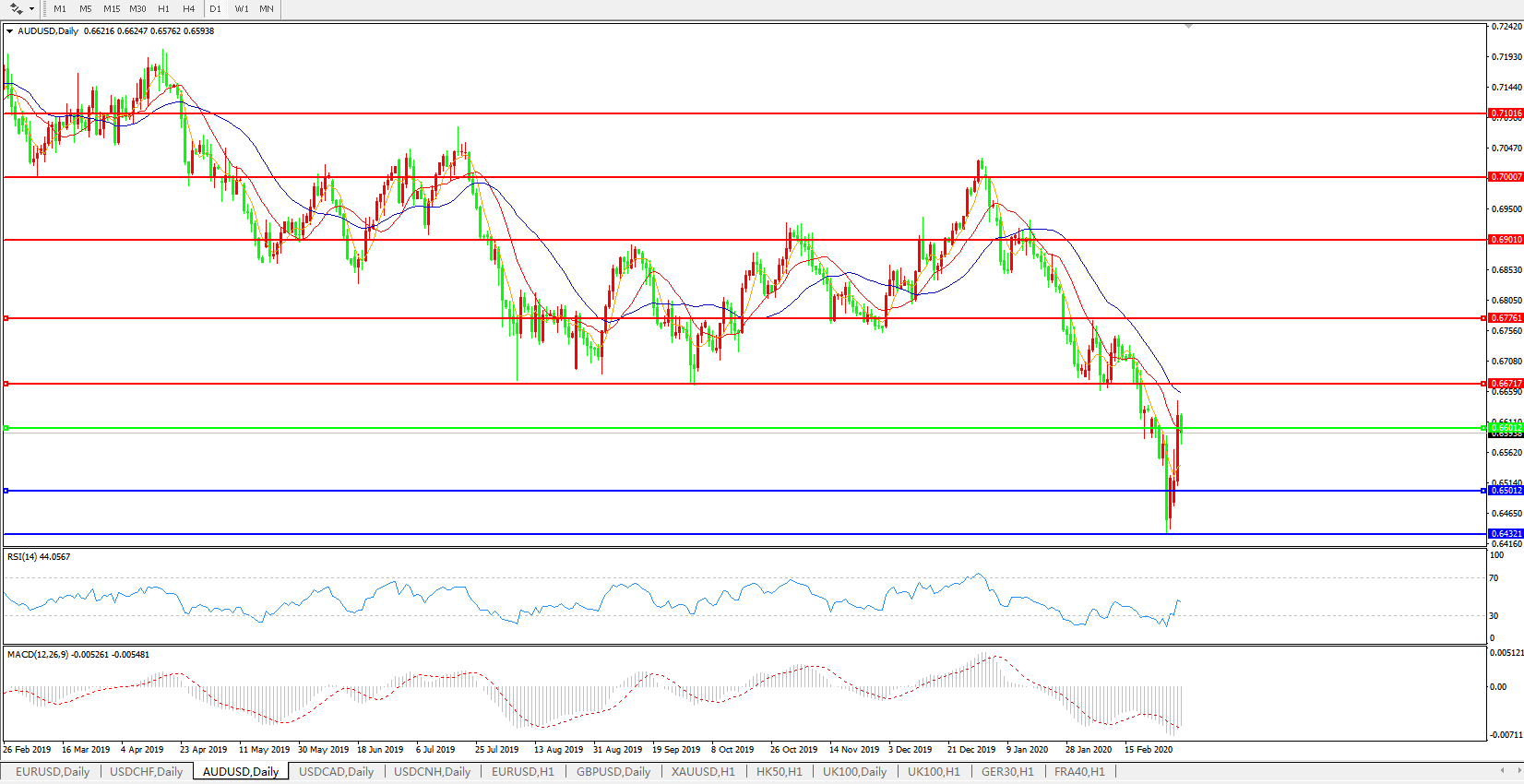 澳元兑美元AUDUSD 日线图: