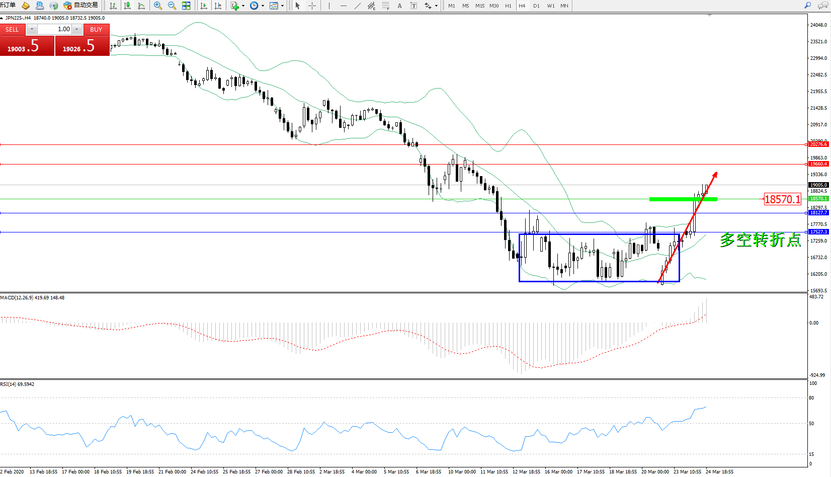 日经225指数324日(周二)收盘上涨1189.72点,涨幅7.04%,报18077.50点。创20162月中旬以来最大升幅。日本首相安倍晋三正在考虑设立一个专家组,以研究是否应就新冠病毒大流行宣布紧急状态;专家组可能最快会在周三成立;报道未透露消息来源。隔夜美联储的无限宽松行动,令全球多资产反弹走高,但疫情带来的负面冲击料难以被宽松行动对冲掉。围绕疫情持续很长时间的担忧导致全球流动性紧缩,这促使美联储本月推出了一系列强力措施,从增加互换额度到周一宣布无限量购债等等;日本史无前例的使用互换额度,其中一部分原因在于成本;日本央行行长黑田东彦:目前预计ETF账面损失为2-3万亿日元,日本房地产投资信托基金(J-REIT)的账面损失约为0.1万亿日元,正密切监控市场动态。