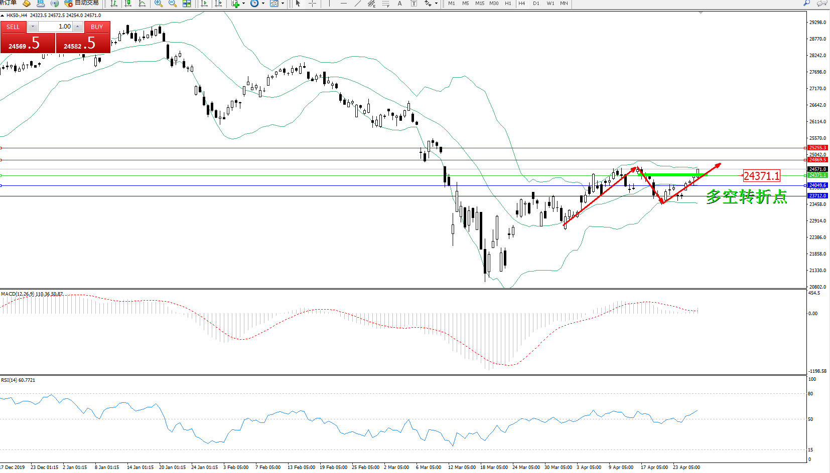 恒指HK50 ——4小时K线图显示: