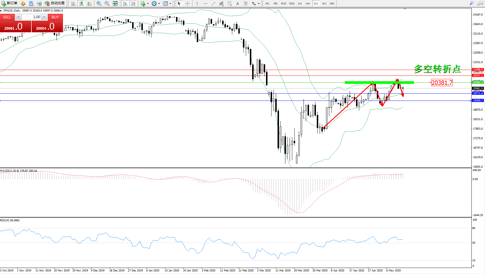 日经225指数514日(周四)收盘下跌361.55点,跌幅1.78%,报19905.50点。日本央行行长黑田东彦:日本经济受到疫情的严重冲击,预计日本经济将萎缩,今年一二季严重受抑,一旦疫情得到控制,日本经济将在今年下半年复苏,日本央行将购买不限数量的日本国债以控制收益率,收益率曲线控制令政策组合更有效,本央行将在必要时增加宽松政策;如果需要,日本央行还有许多工具和措施可进行部署;日本央行政策已经对经济产生一些影响,经济活动可能在2020年下半年重启。根据收益率曲线控制政策,我们将购买任何数量的日债来维持10年债收益率在零附近,这会自动增强财政和货币政策的协调,日本央行可能必须在未来几年继续实施宽松政策,在病毒爆发后,额外的措施将逐步减少,当前实施的非常规的新冠肺炎措施是暂时的,预计不会很快实现2%的通胀目标。