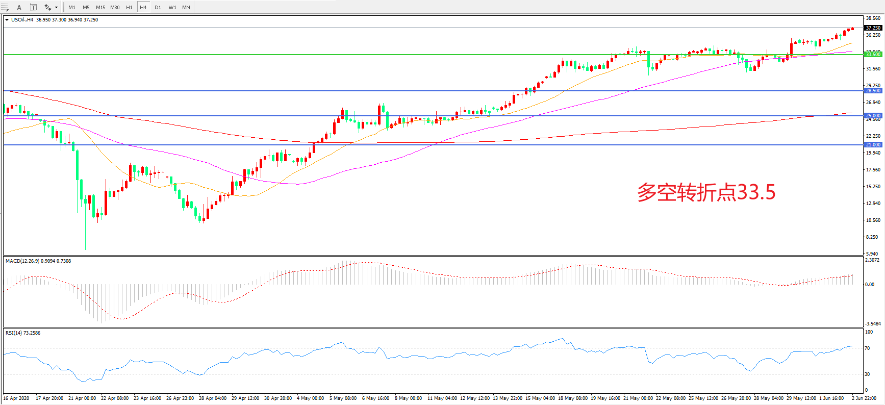 多空转折点:33.50