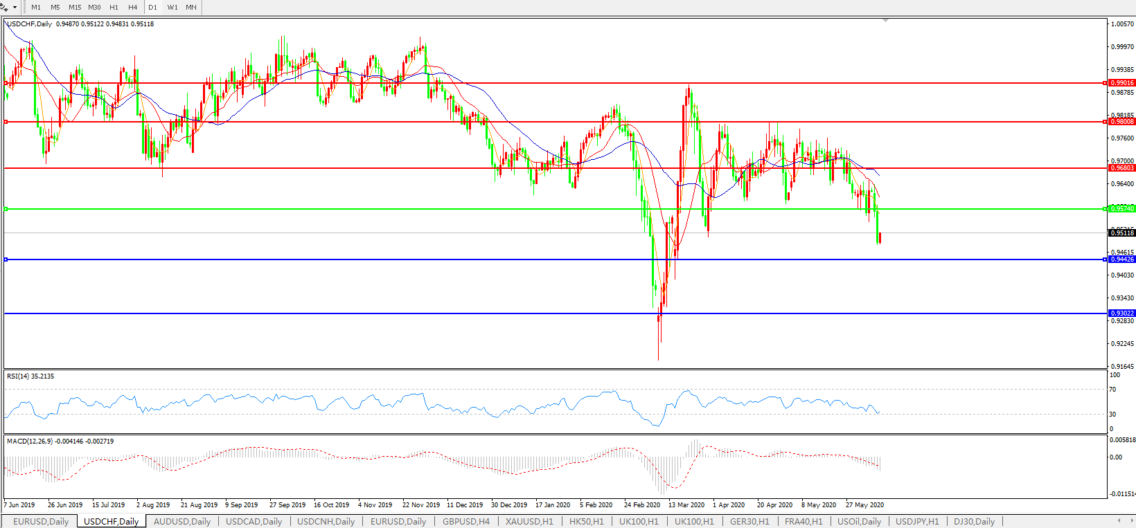 美元兑瑞郎USDCHF    日线图:
