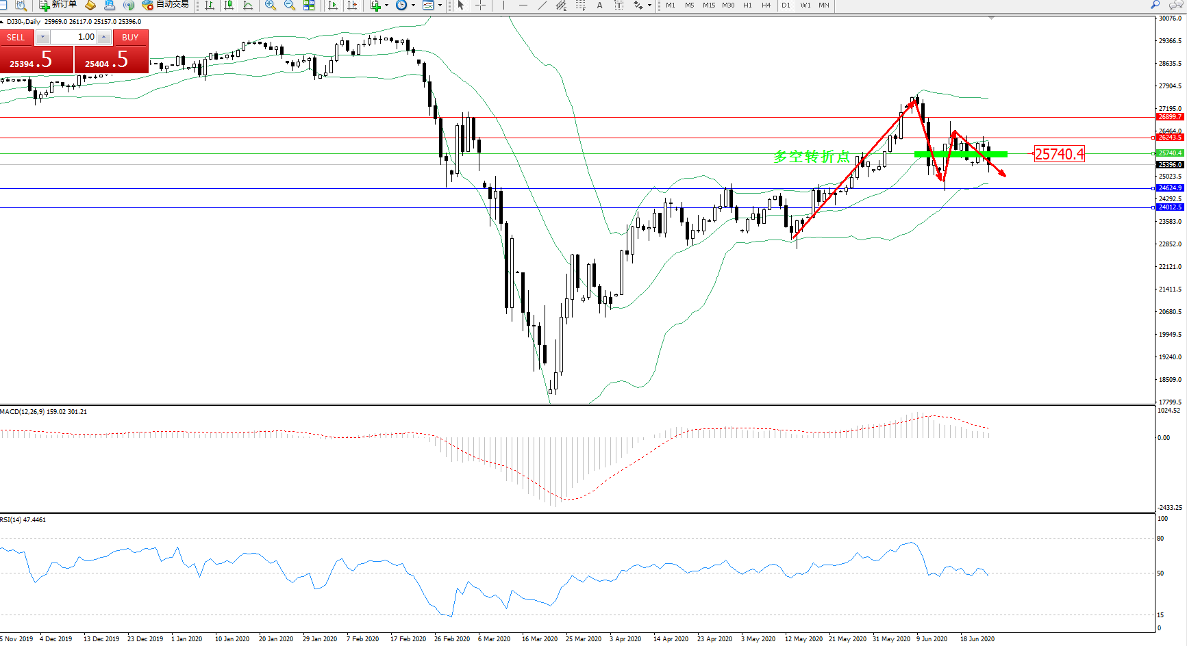 多空转折点:25740