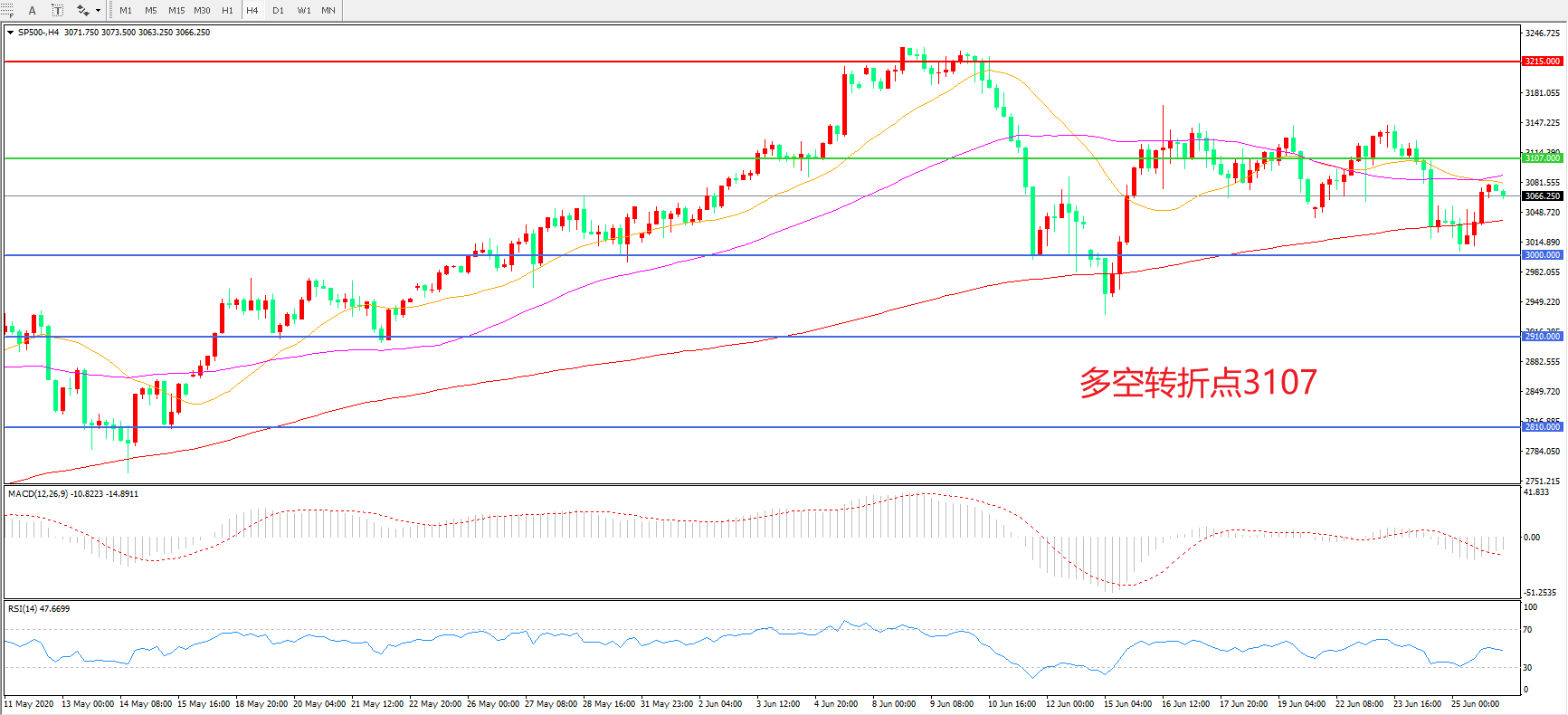 多空转折点:3107.00