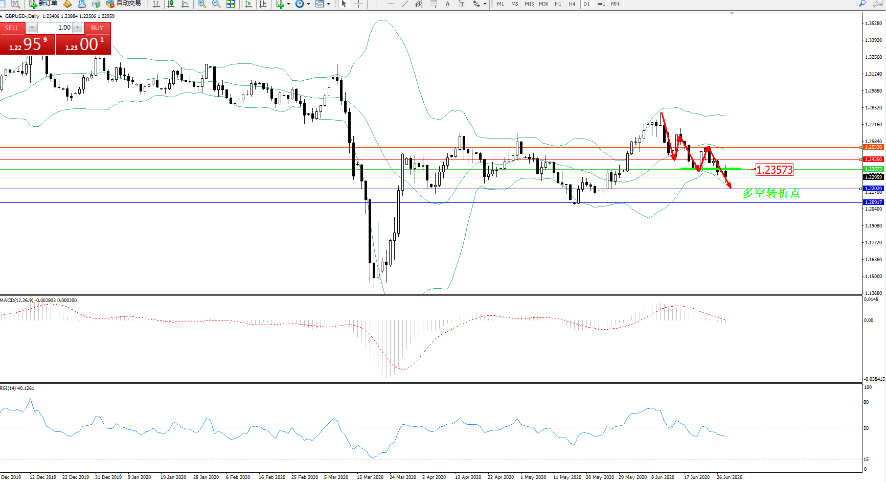 交易策略:1.23573下方看跌,目标1.22020、1.20917