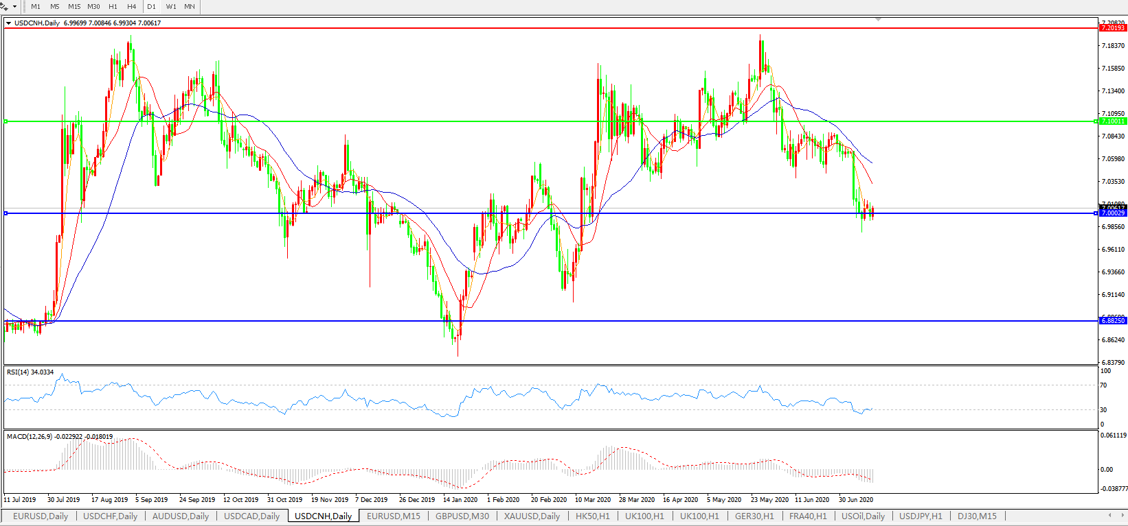 交易策略: 在7.1000之下,看跌,目标价位为7.0000,然后为6.8820。