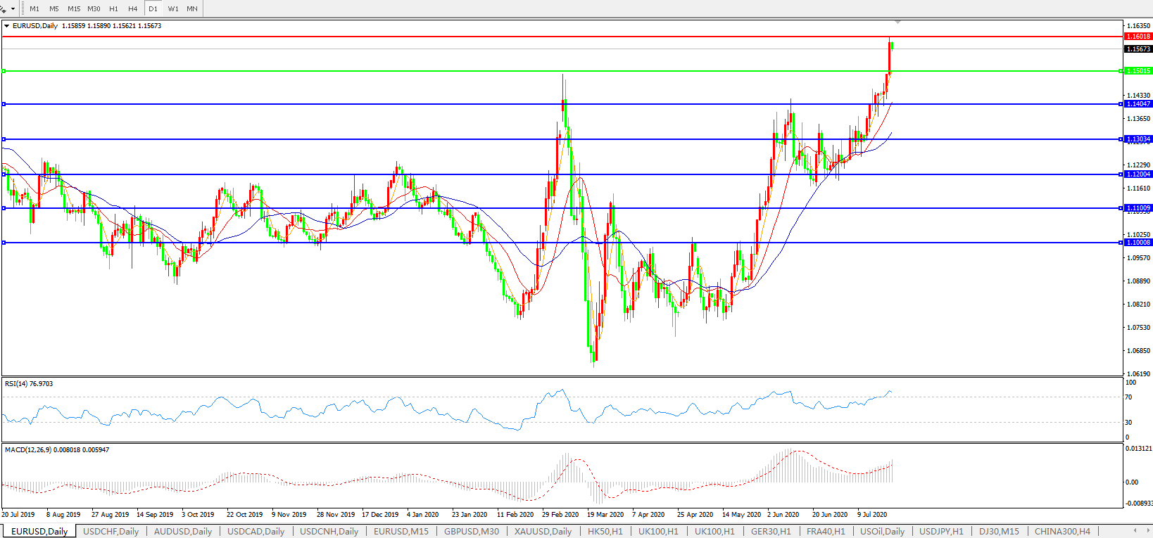 欧元兑美元EURUSD 日线图: