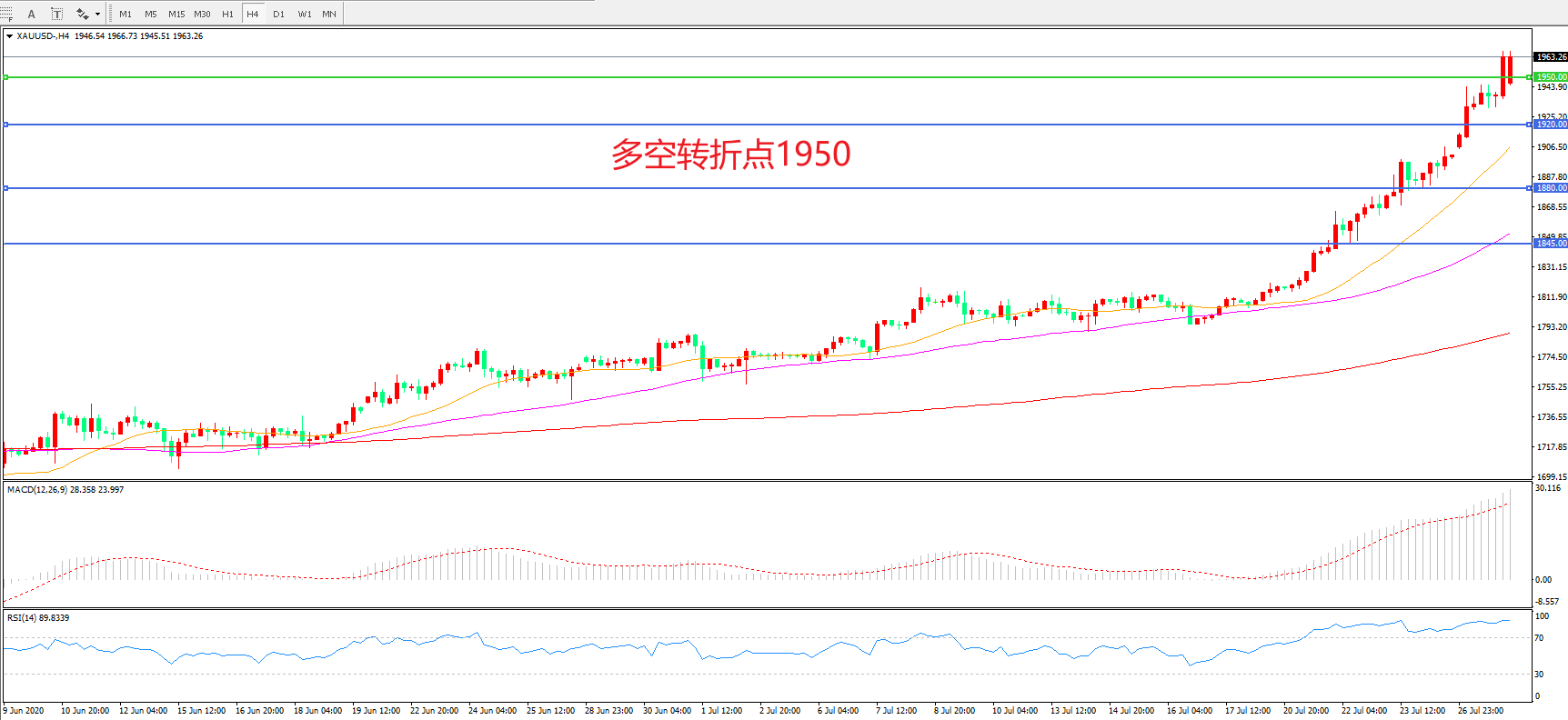 多空转折点:1950.00
