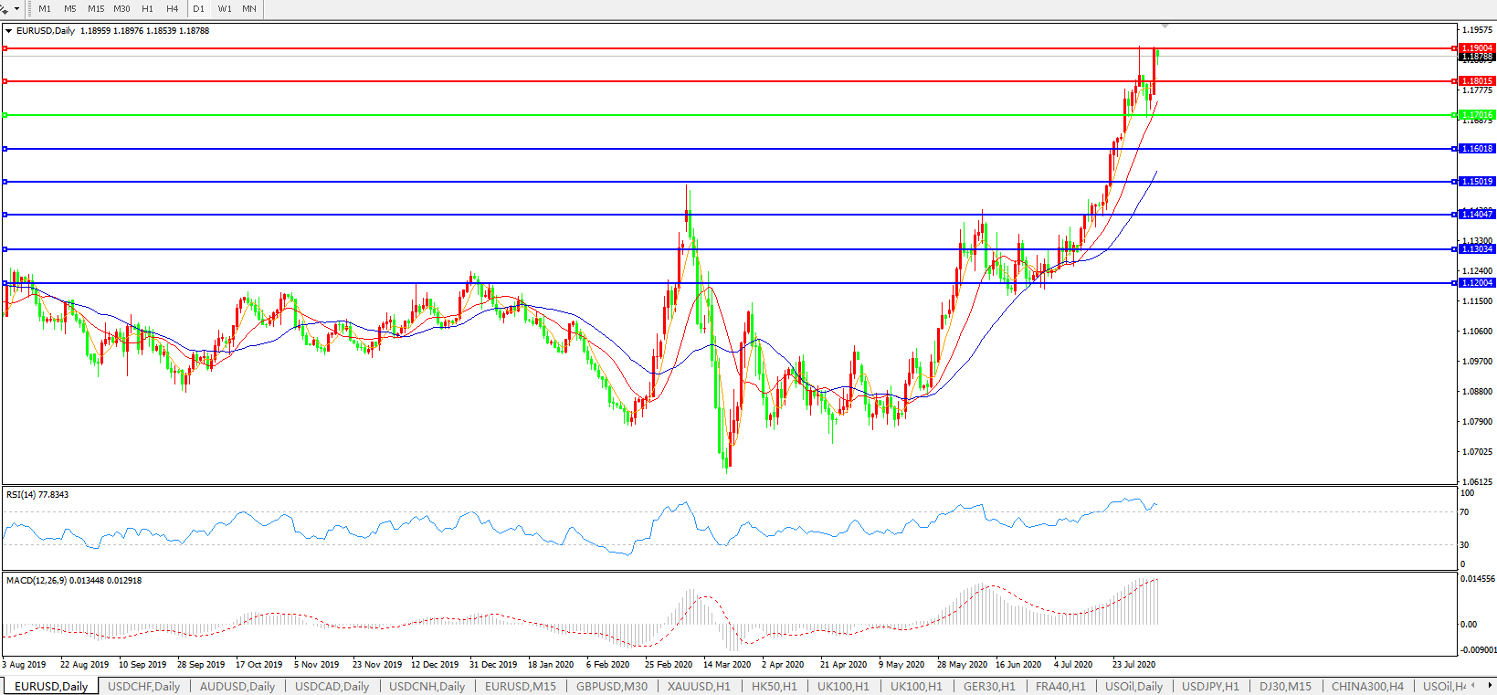 欧元兑美元EURUSD 日线图: