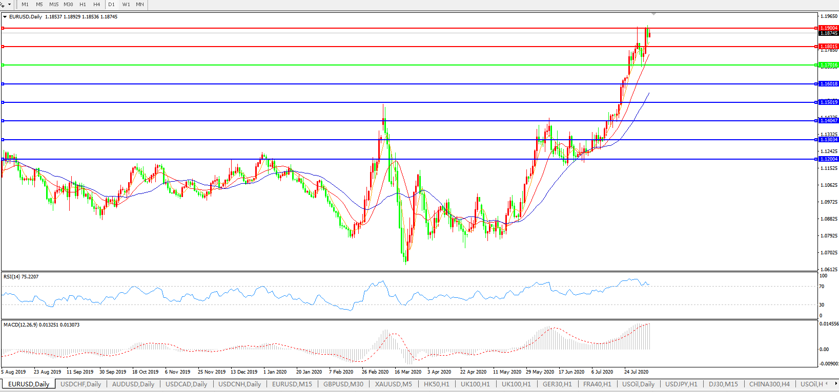 欧元兑美元EURUSD 日线图: