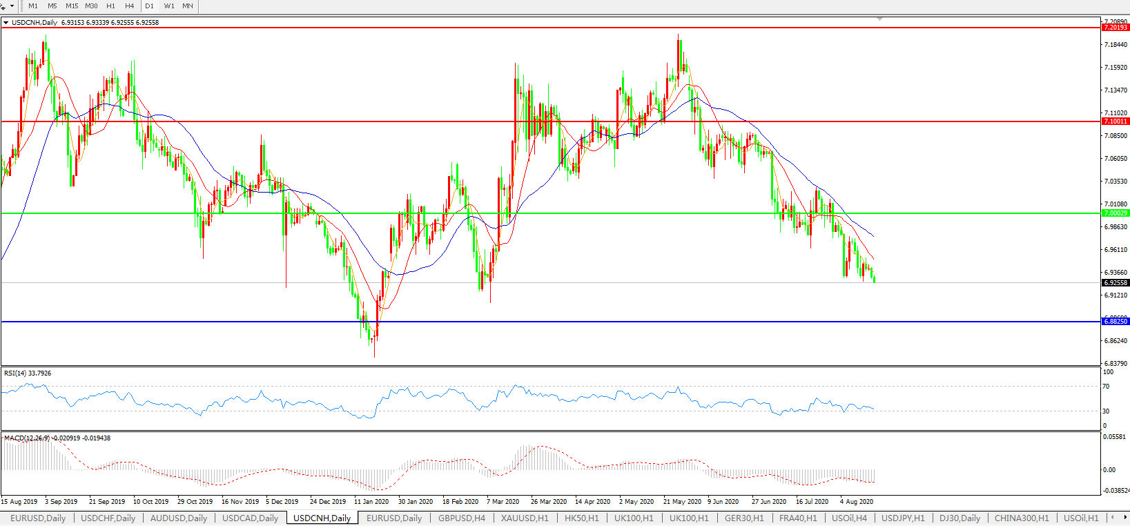 美元兑人民币USDCNH    日线图: