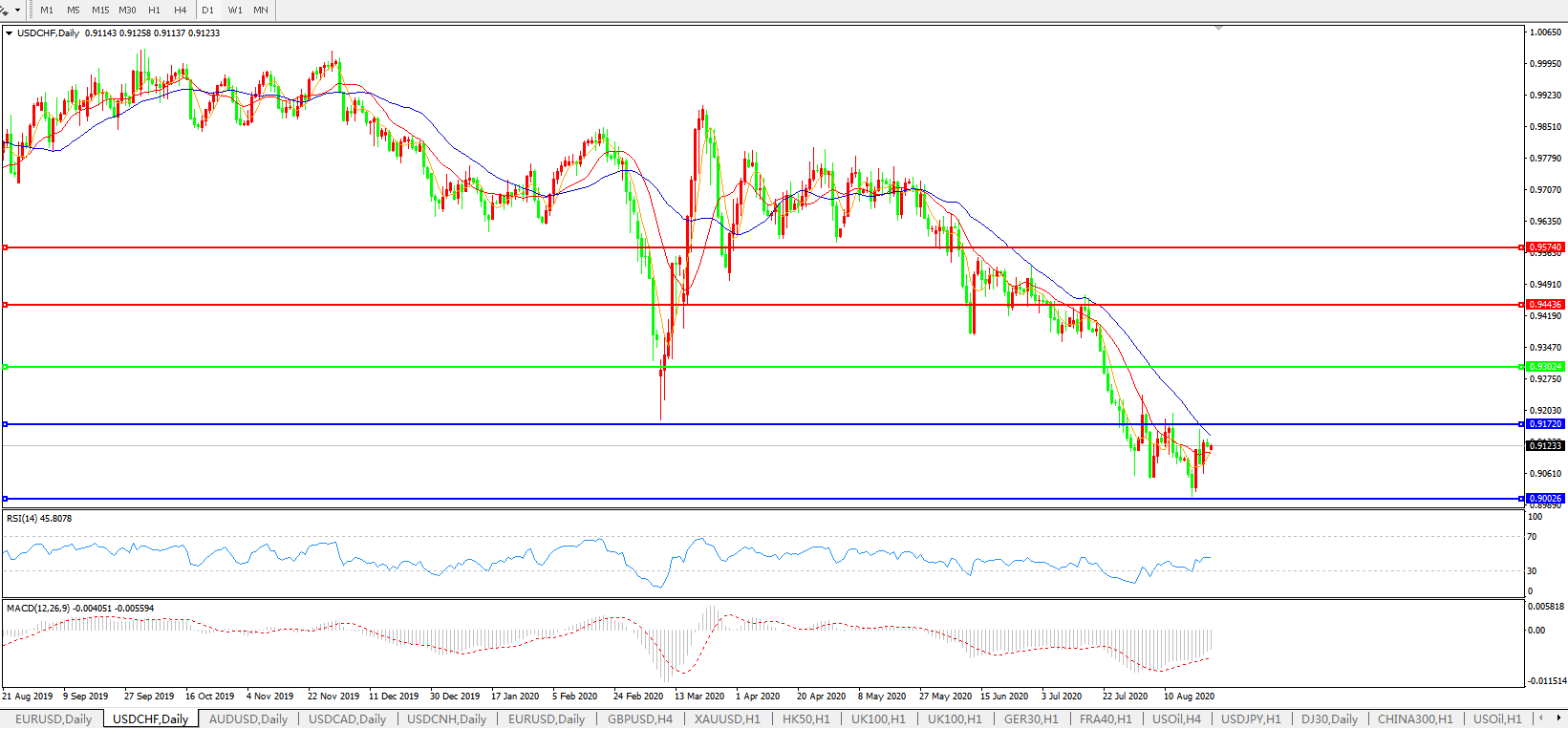 美元兑瑞郎USDCHF    日线图: