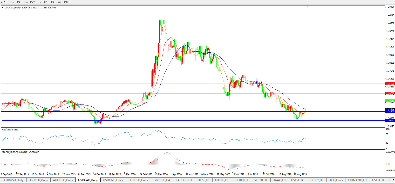 美元兑加元USDCAD 日线图:
