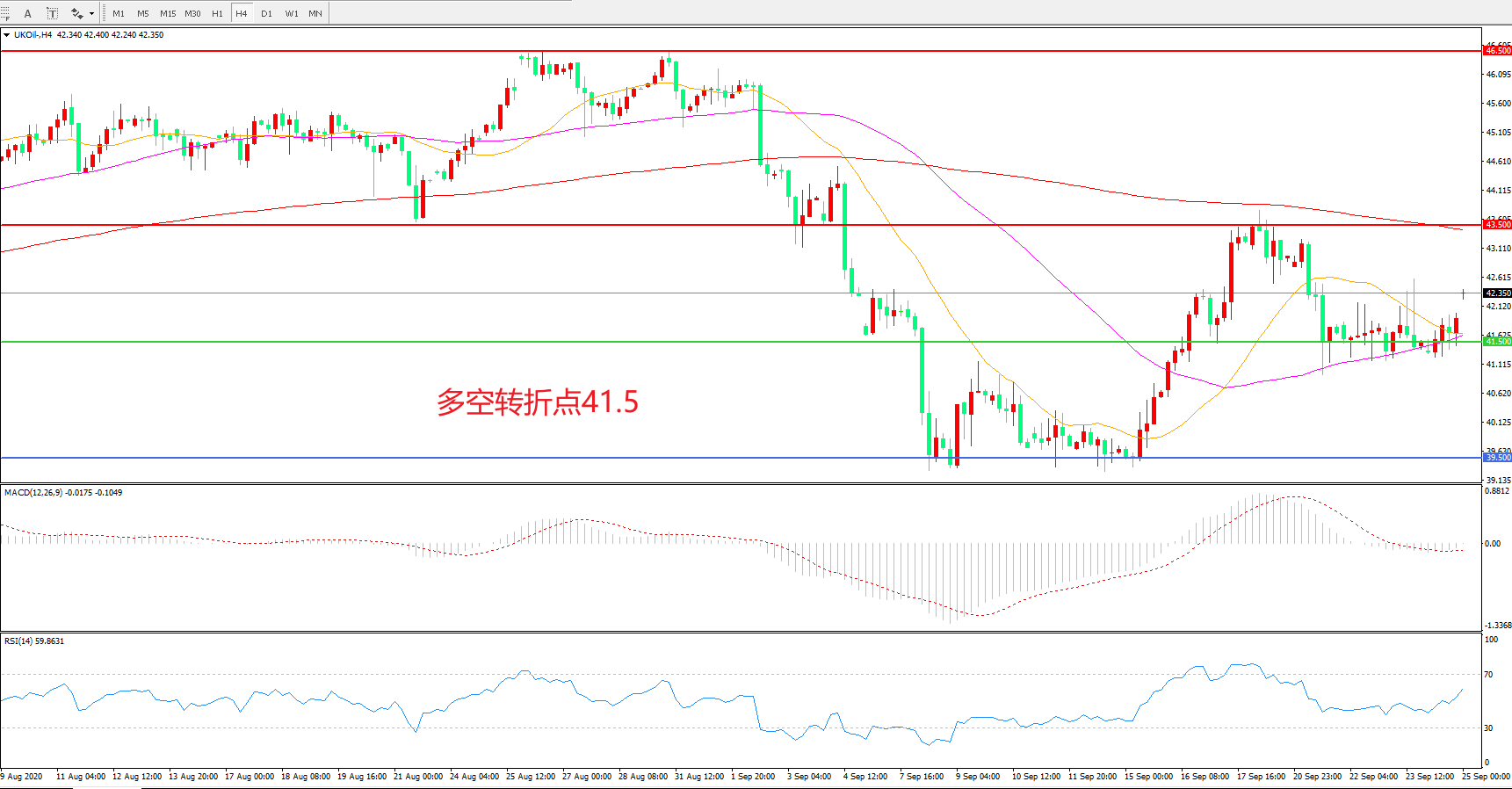 交易策略:  在41.50之上看涨,目标43.50      46.50