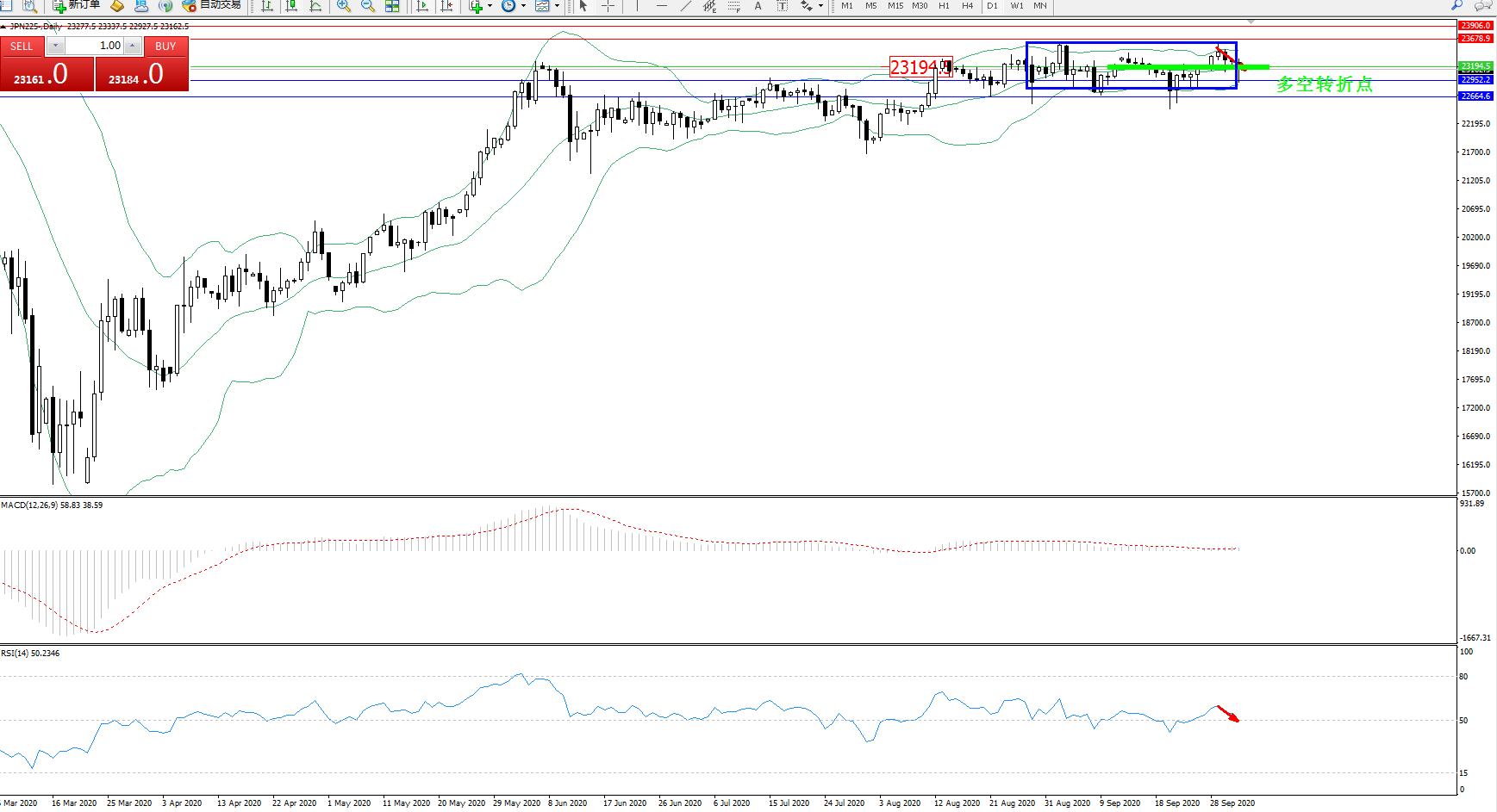 日经225指数10月2日(周五)收盘下跌166.43点,跌幅0.72%,报23018.50点。特朗普在推特上称自己和第一夫人新冠病毒检测阳性,二人将开始隔离。市场风险偏好情绪骤降,股市承压,又有逾50名共和党前国家安全官员支持拜登,倒戈人数已近130人,美国大选的不确定性在增加,日本经济再生大臣西村康稔:认为特朗普感染新冠病毒将对市场造成重大影响。美国财政协议可能在高层“群龙无首”的背景下充满更多变数,因为直到目前为止,白宫方面还在施压要求尽快通过援助协议,而参院共和党人则对此表现得不甚积极。如果特朗普总统暂时淡出权力一线,谈判进程可能被进一步拖延至大选投票日后,这对于风险资本市场是显著的利空。