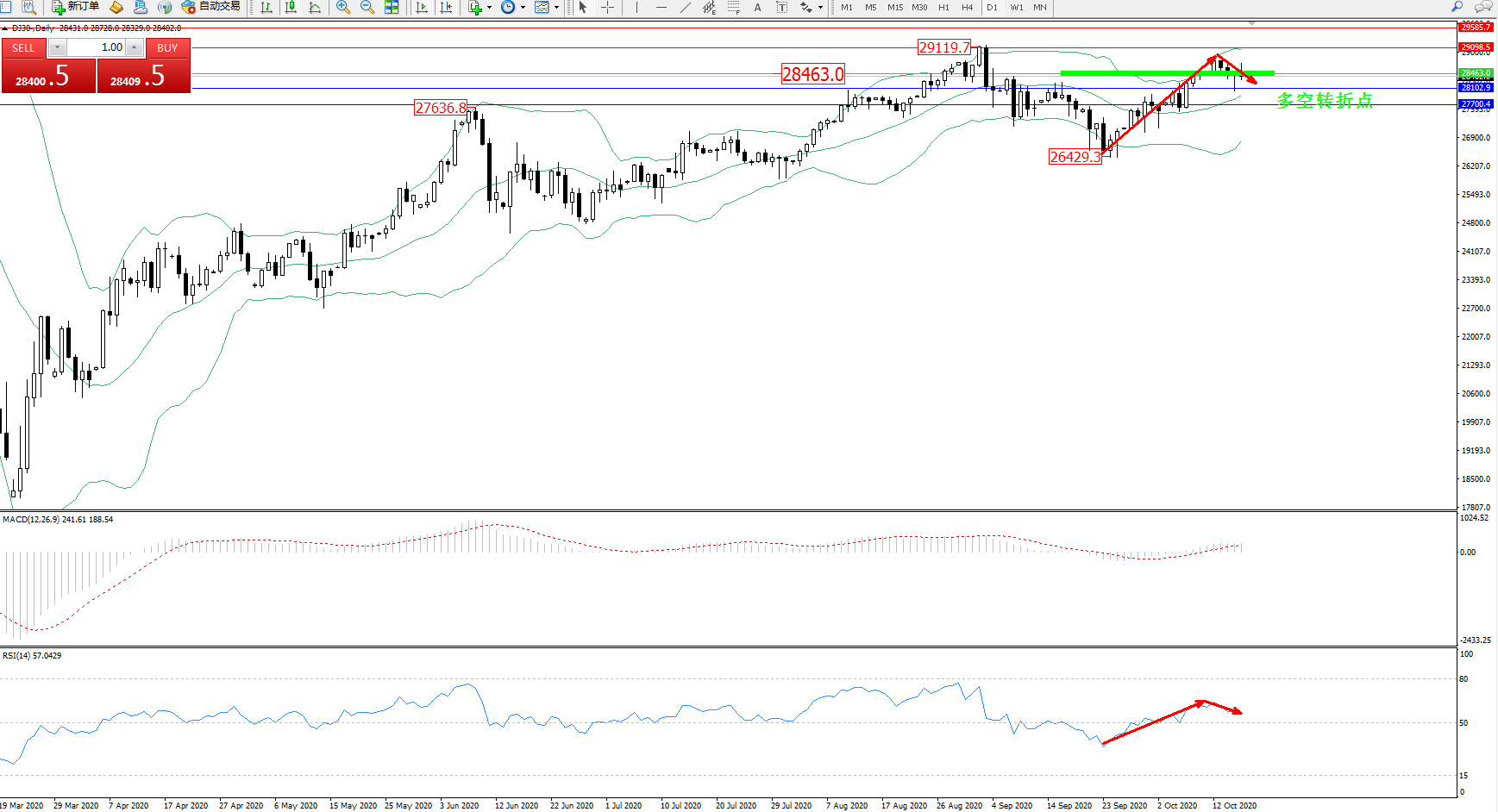 道琼斯指数10月16日(周五)收盘上涨112.10点,涨幅0.39%,报28606.31点。美国股市周五涨跌互现,大型科技股下跌,周五股票期权到期,抵消了好于预期的经济数据的提振作用.美国财政部公布的最新数据显示,美国国债海外持有规模在8月下降138亿美元,至7.08万亿美元。日本8月持有的美国国债规模较7月的1.28万亿美元减少了146亿美元,仍是美国国债在海外的最大持有国。第二大持有国中国的持有规模在8月减少了54亿美元,至1.07万亿美元。受此前大规模的财政刺激措施影响,截至9月底的财政年度,美国国会预算赤字激增逾两倍,总额超过3.1万亿美元,债务规模超过了GDP;根据第二季度GDP,美国赤字占经济之比跃升至16%,为1945年以来的最高水平。