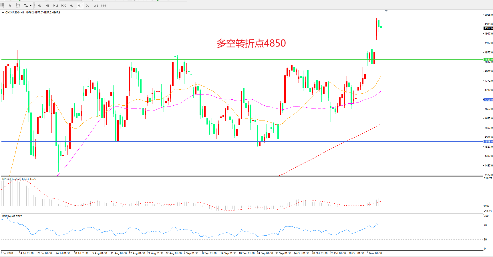 交易策略:在4850.00之上看涨,目标5000.00       5150.00