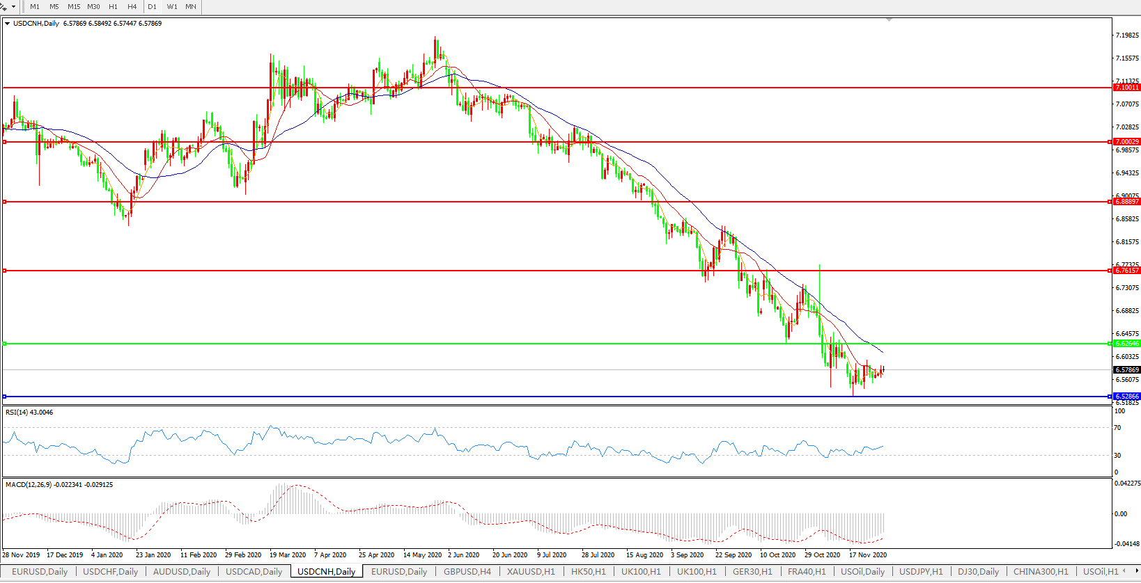 备选策略: 在6.6265之上,看涨,目标价位为6.7615,然后为6.8889。