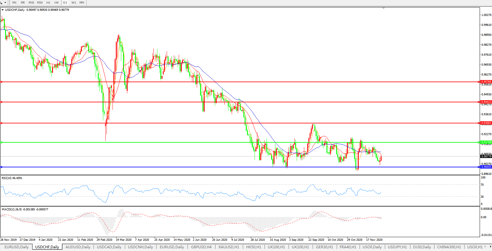 美元兑瑞郎USDCHF 日线图: