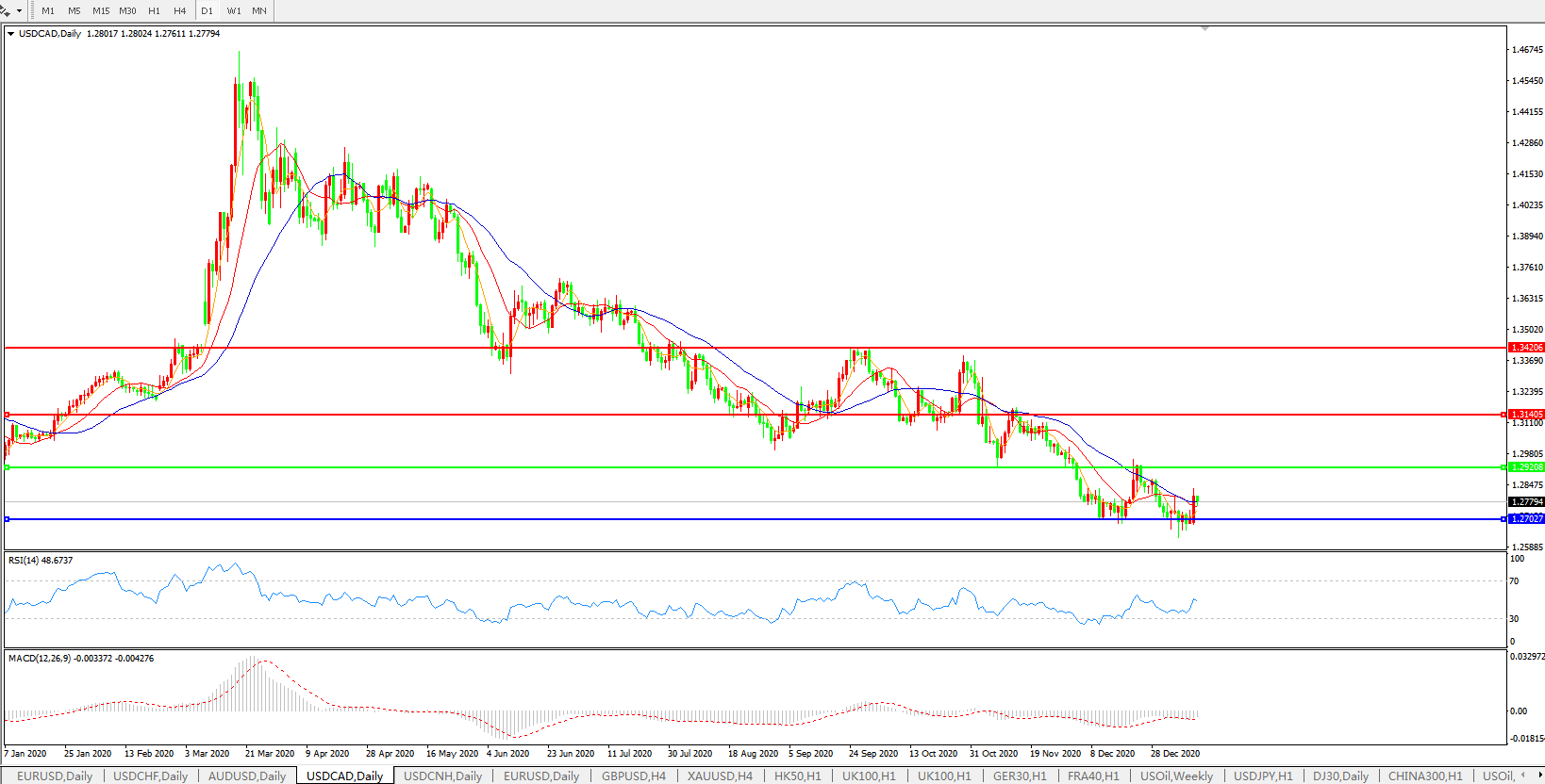 美元兑加元USDCAD 日线图: