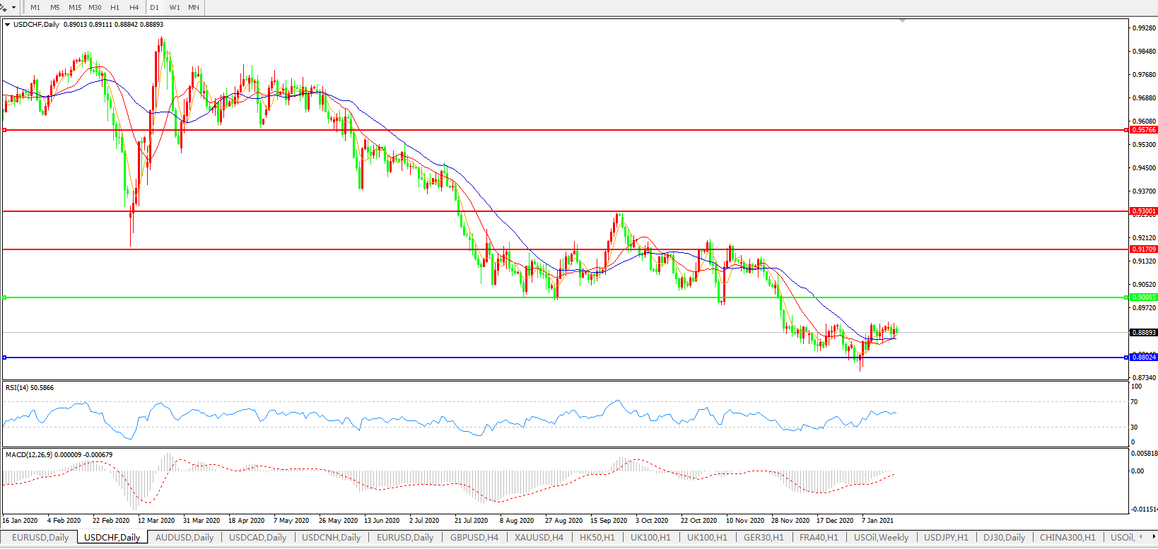 美元兑瑞郎USDCHF 日线图:
