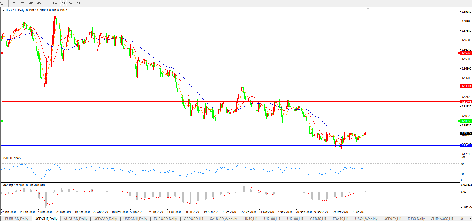 美元兑瑞郎USDCHF 日线图: