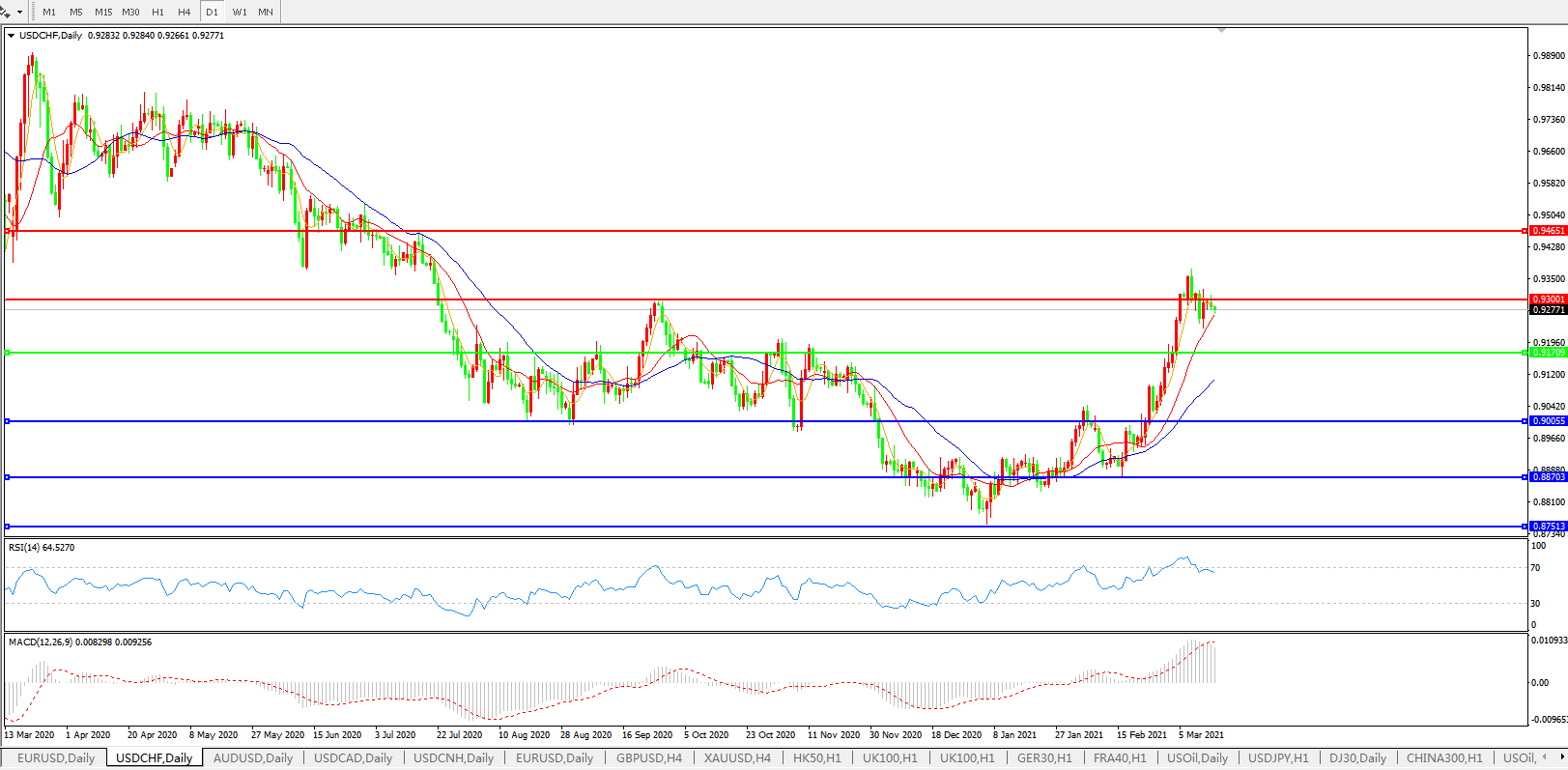 美元兑瑞郎USDCHF 日线图: