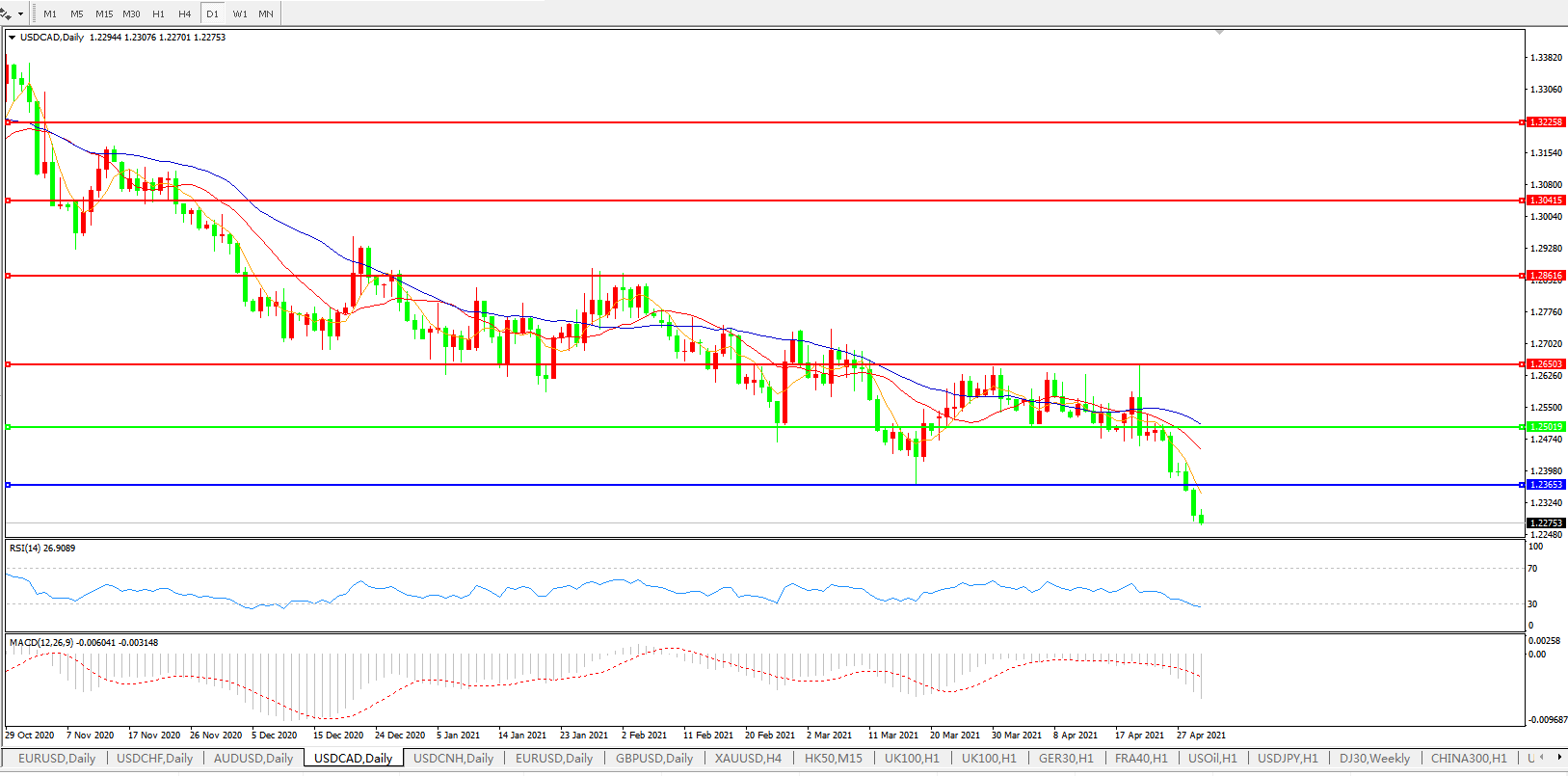 美元兑加元USDCAD    日线图:
