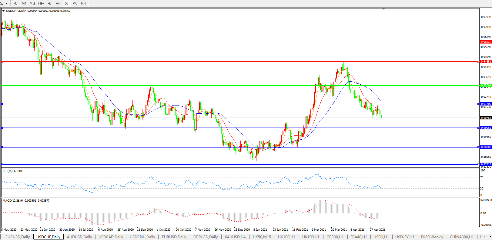美元兑瑞郎USDCHF 日线图: