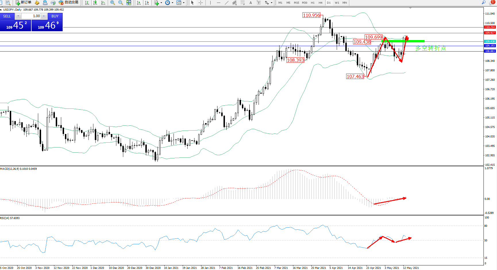 多空转折点:109.438