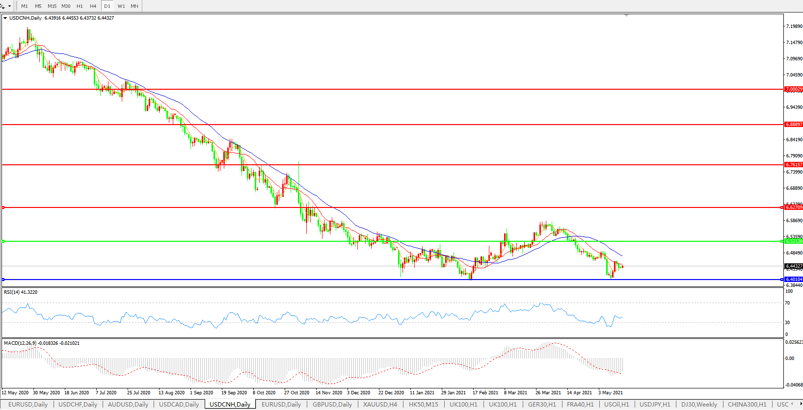 美元兑人民币USDCNH    日线图: