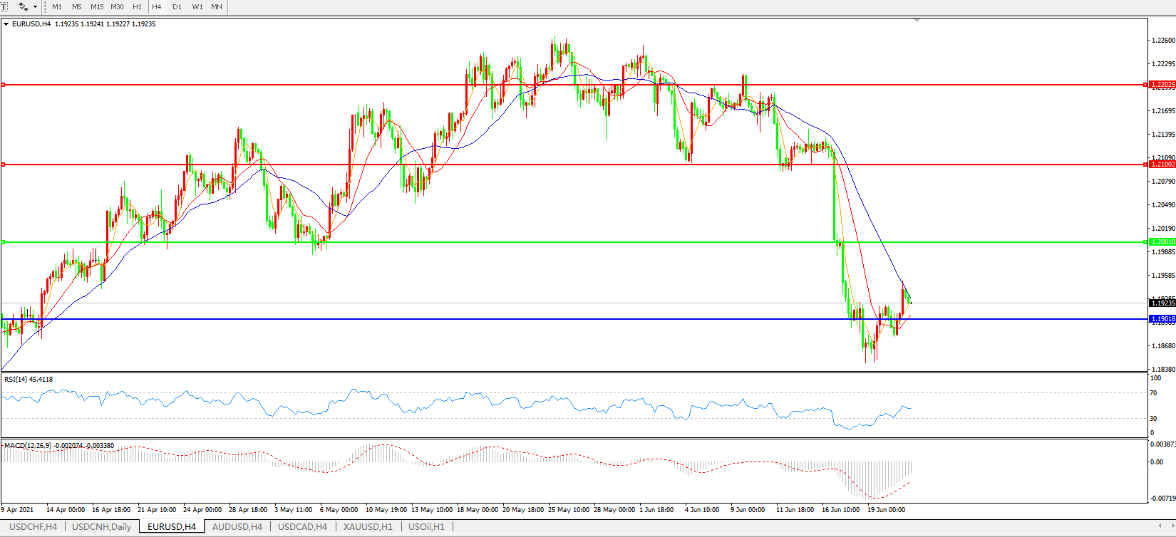 欧元兑美元EURUSD 4小时图: