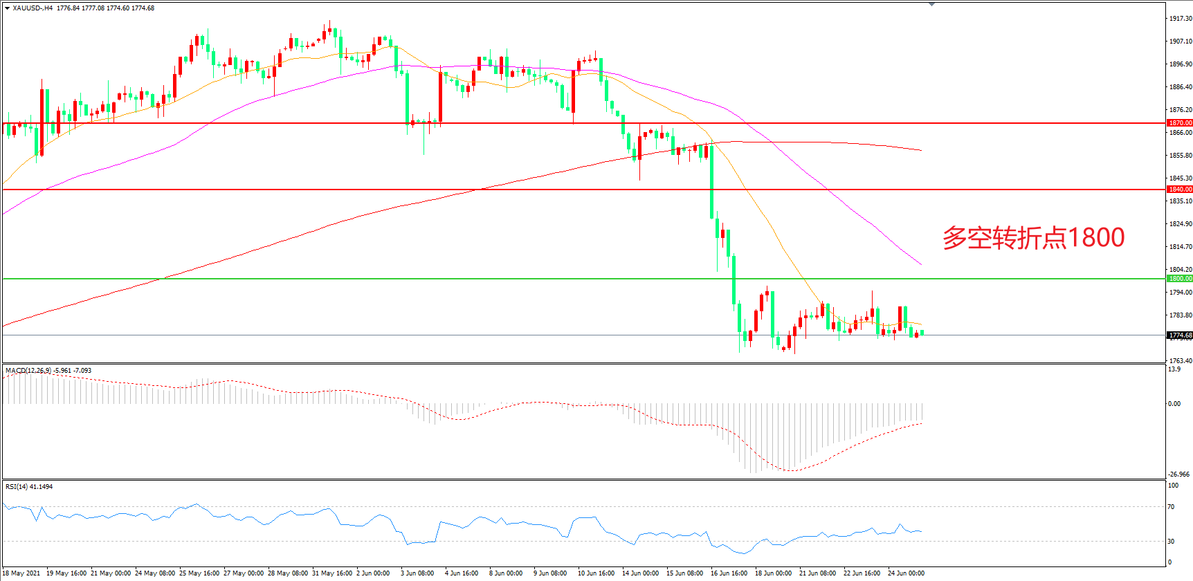 交易策略:在1800.00之下看跌,目标1760.00       1730.00