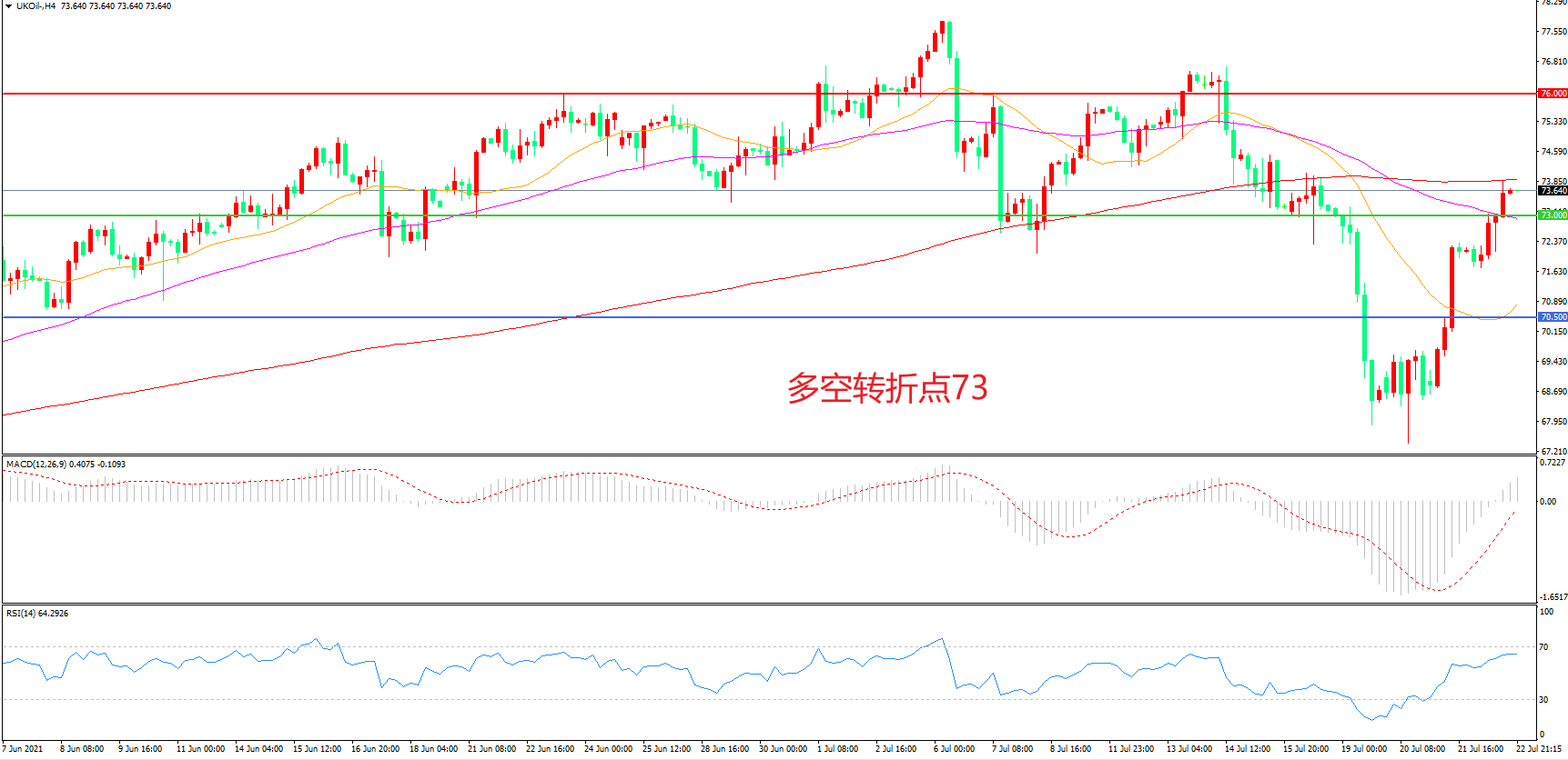 交易策略:在73.00之上看涨,目标76.00               79.00
