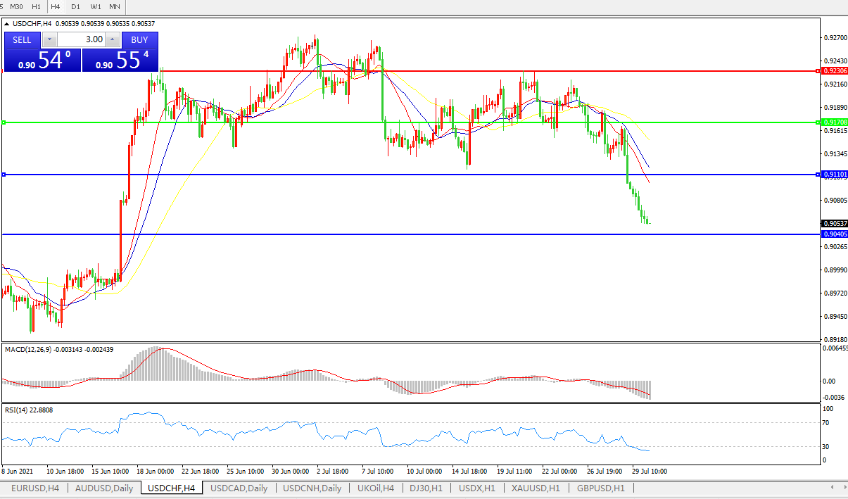交易策略:0.9170下方看跌,目标0.9110、0.9040
