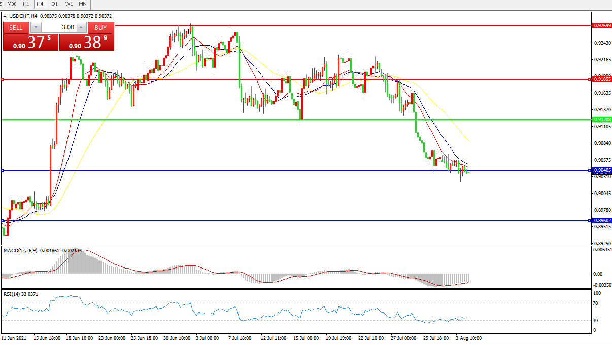 美元兑瑞郎USDCHF 4小时图: