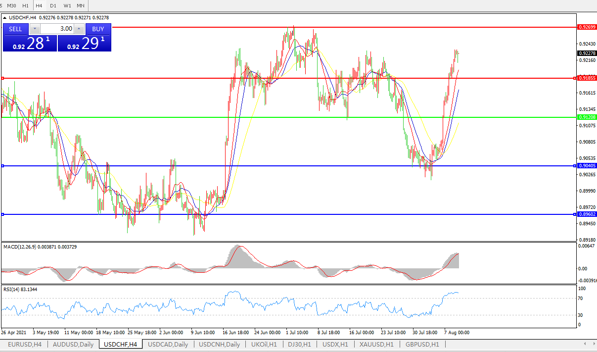 美元兑瑞郎USDCHF 4小时图: