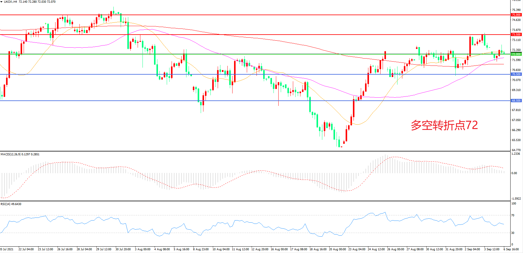 多空转折点:72.00