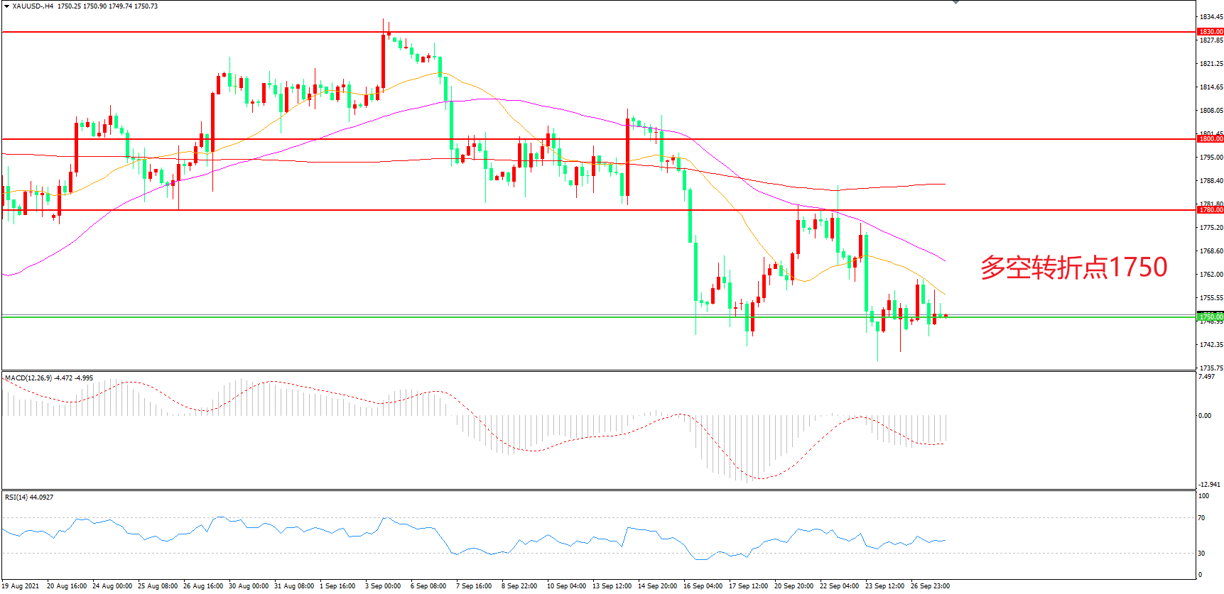 周一(9月27日),美联储主席鲍威尔在讲话中表示近期通货膨胀上升的原因可能比预期的持续时间更长, 10年期美债收益率飙升至三个月新高,金价受到压制小幅回落,收报1750.68美元/盎司。本周,市场将密切关注美联储主席鲍威尔和财政部长耶伦在国会的作证,此外,美国国会必须在9月底之前通过一项新的预算,以避免政府关门,接踵而至的重磅事件将显著提高市场的波动性。