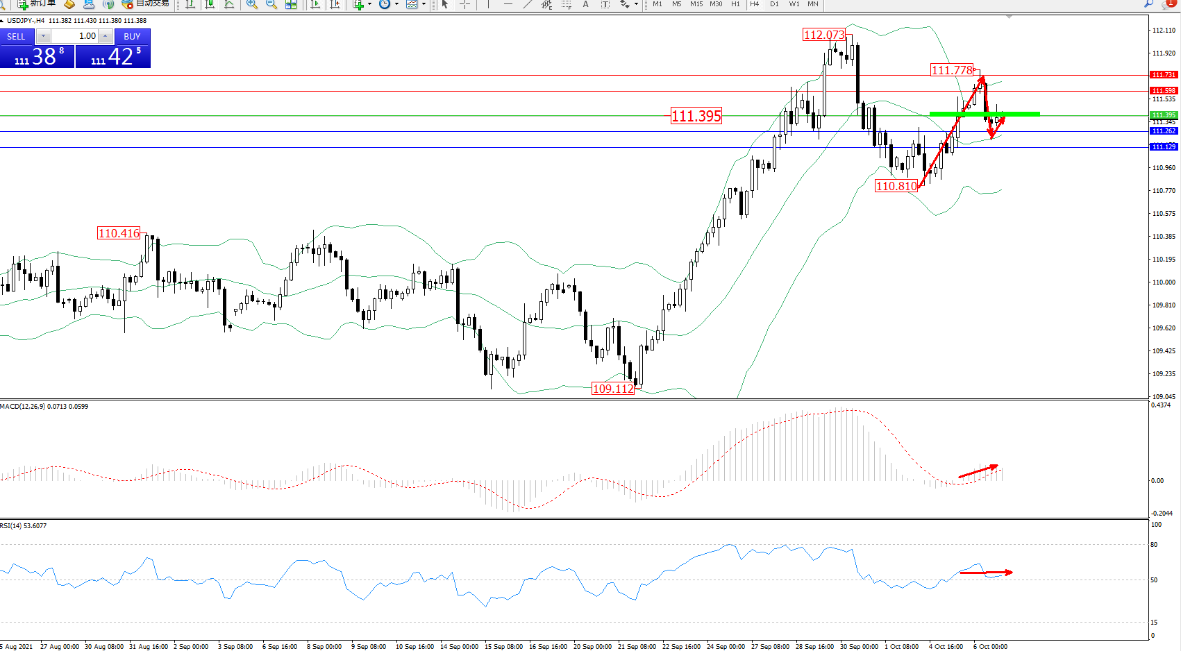交易策略:111.395上方看涨,目标111.598、111.731