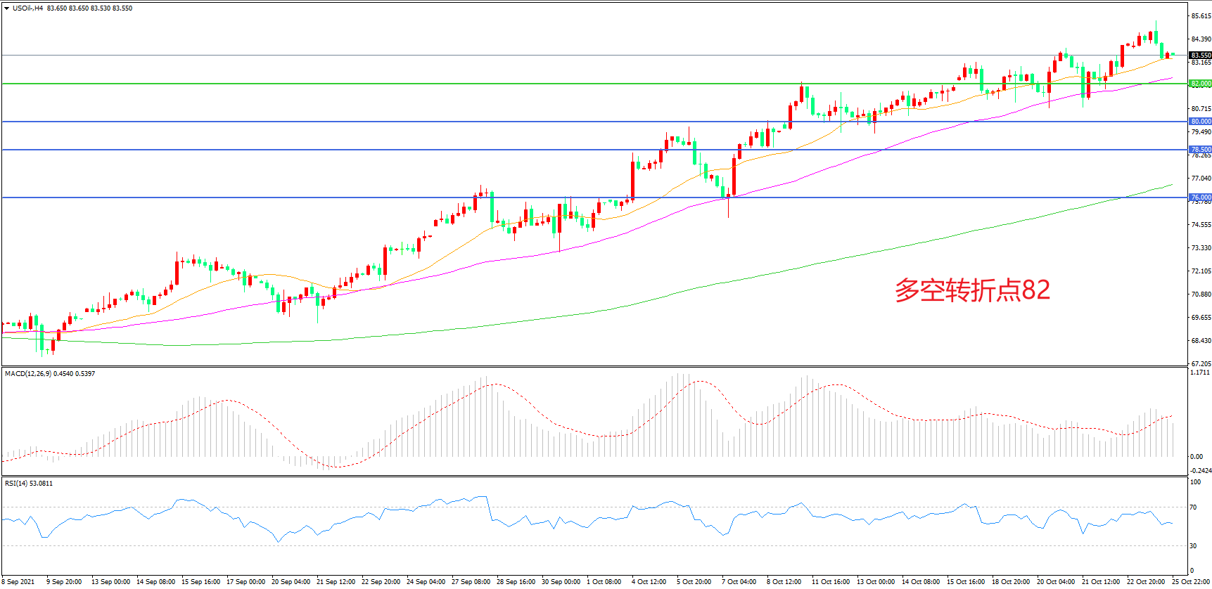 多空转折点:82.00