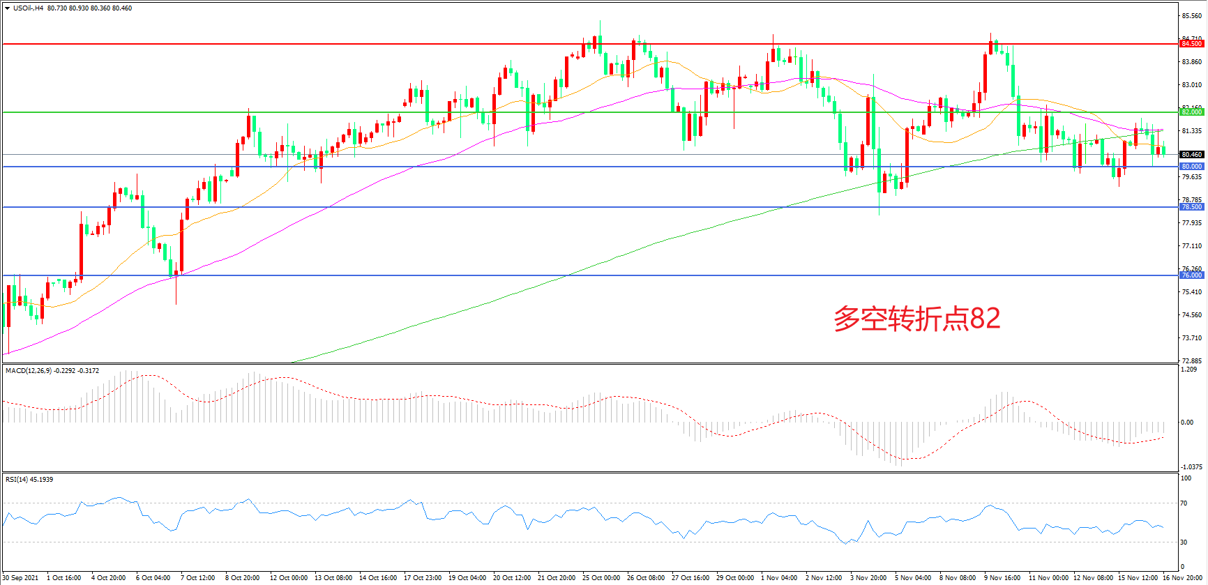 多空转折点:82.00