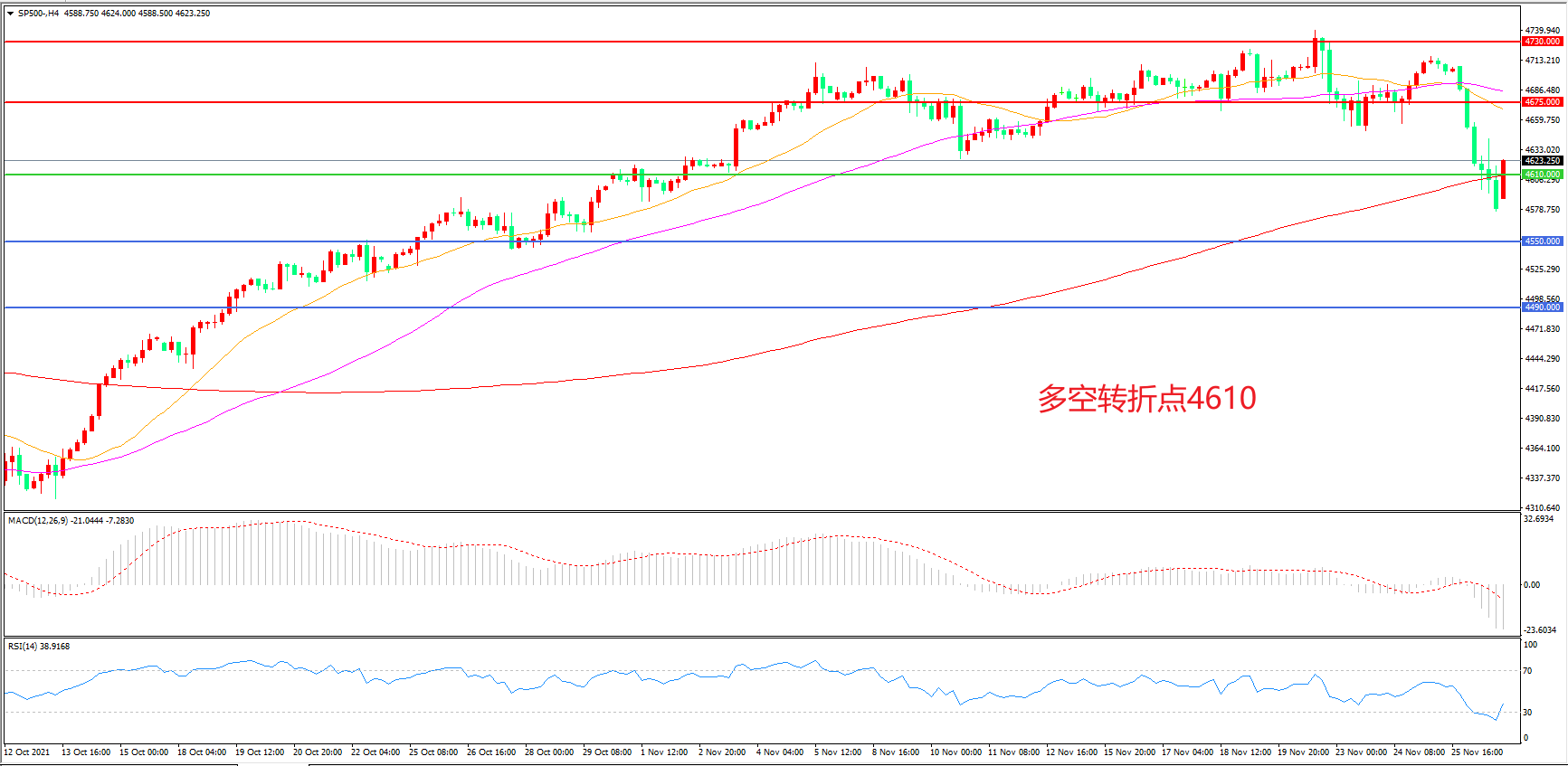 周一(11月29日),拜登称目前美国不需要为遏制奥密克戎变异毒株实行停工和封锁,市场对新发现新冠变异毒株奥密克戎的恐慌缓和,上周五暴跌的欧美股市集体反弹,标普500大幅回升,收报4655.25点。拜登称目前美国不需要为遏制奥密克戎变异毒株实行停工和封锁,如果本周五非农的表现能够超出预期,美股可能迎来短暂回暖。
