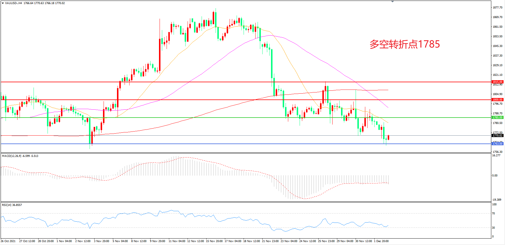 多空转折点:1785.00