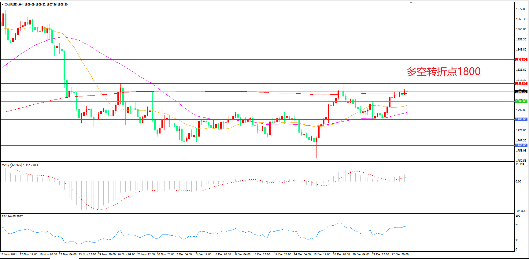 交易策略:在1800.00之上看涨,目标1815.00 1830.00