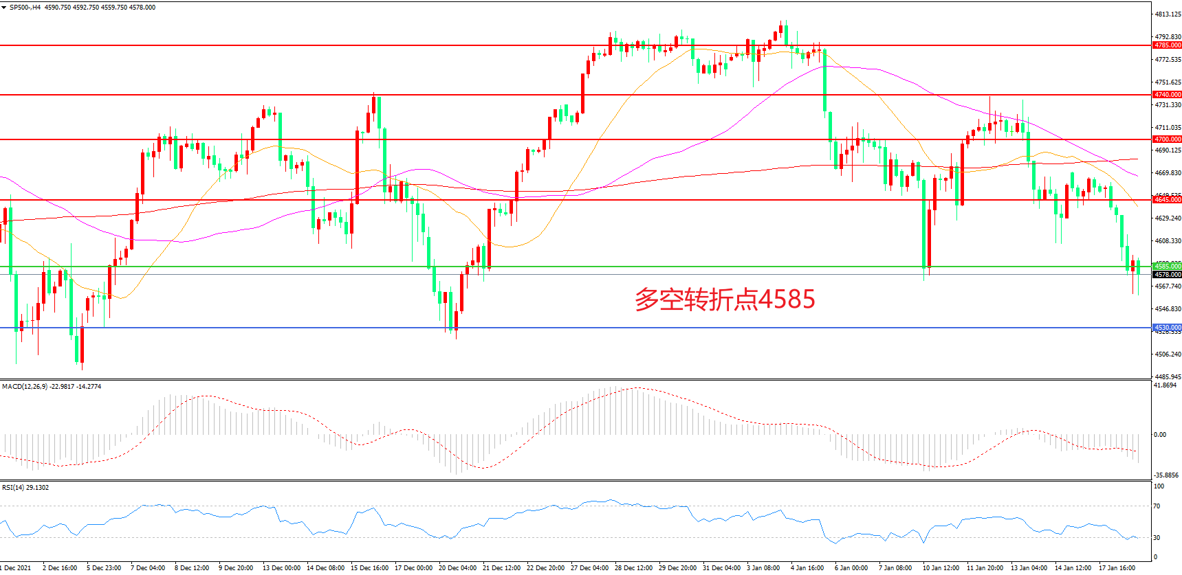 多空转折点:4585.00