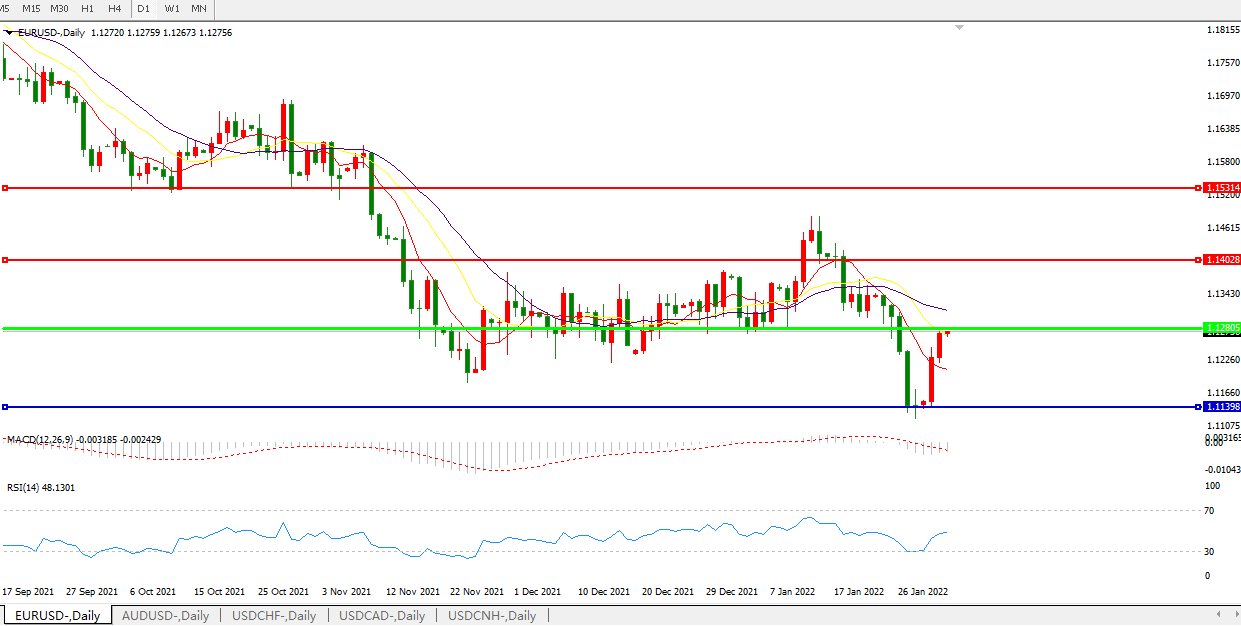 交易策略:1.1280下方看跌,目标1.11401.0600