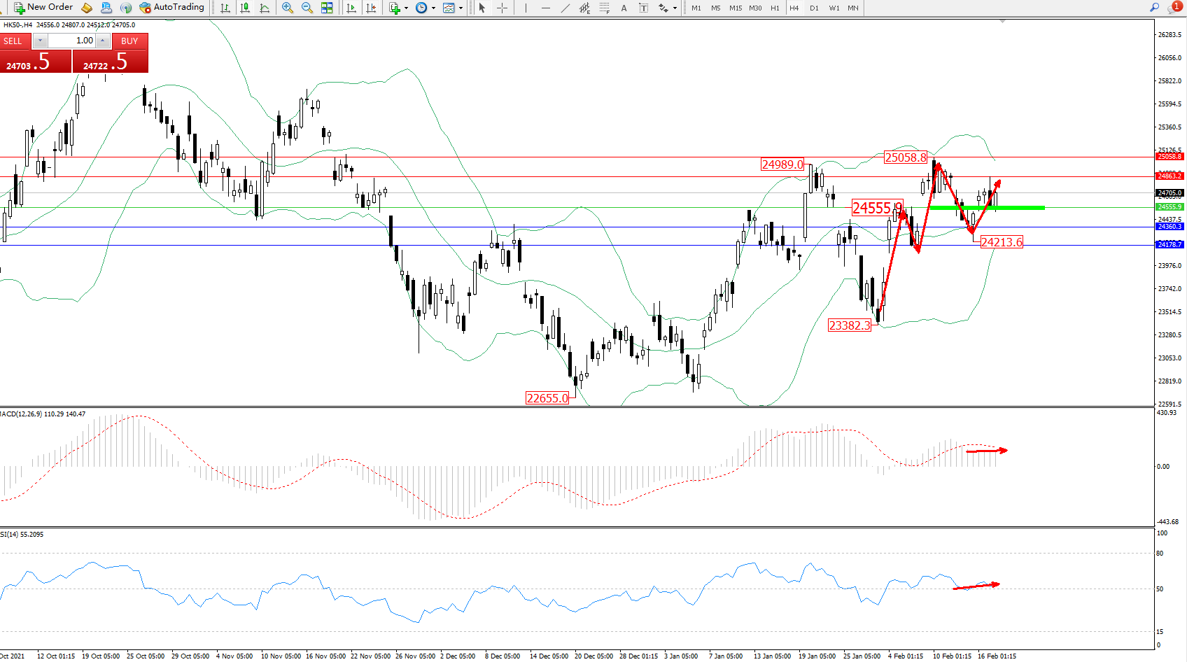 恒指HK50 ——4小时K线图显示: