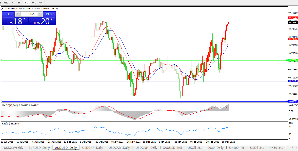压制位:0.7400 0.7550