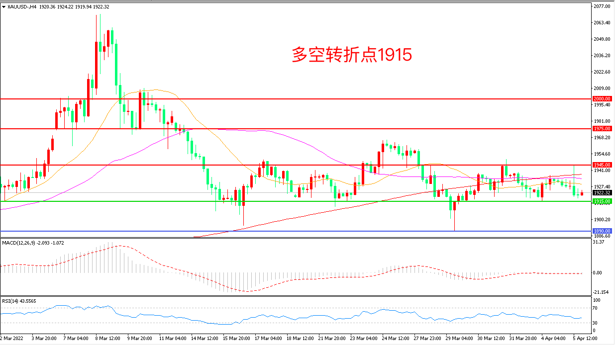 备选策略:在1915.00之下看跌,目标1890.00       1865.00